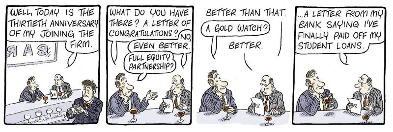 This cartoon is by Alex Williams who draws the Queen’s Counsel cartoons for The Times and in numerous books including Lawyers Uncovered. He also does the cartoons for BabyBarista and has had two more excellent books published recently: 101 Ways to Leave the Law and 101 Uses for a Useless Banker. He offers almost all of his cartoons for sale at £120 for originals and £40 for copies and they can be obtained from this email info@qccartoon.com.