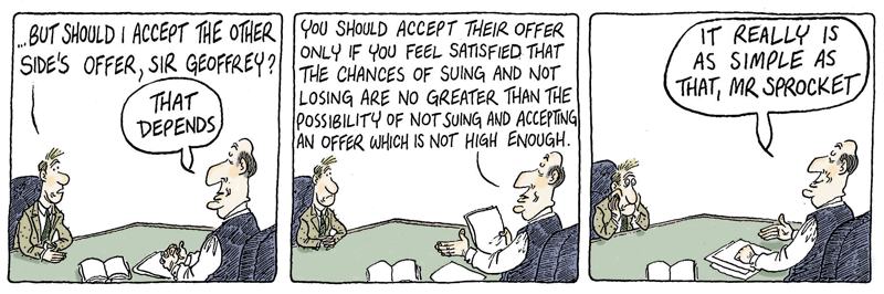 This cartoon is by Alex Williams who draws the Queen’s Counsel cartoons for The Times and in numerous books including Lawyers Uncovered. He also does the cartoons for BabyBarista and has had two more excellent books published recently: 101 Ways to Leave the Law and 101 Uses for a Useless Banker. He offers almost all of his cartoons for sale at £120 for originals and £40 for copies and they can be obtained from this email info@qccartoon.com.