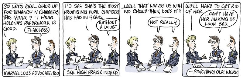 This cartoon is by Alex Williams who draws the Queen’s Counsel cartoons for The Times and in numerous books including Lawyers Uncovered. He also does the cartoons for BabyBarista and has had two more excellent books published recently: 101 Ways to Leave the Law and 101 Uses for a Useless Banker. He offers almost all of his cartoons for sale at £120 for originals and £40 for copies and they can be obtained from this email info@qccartoon.com.