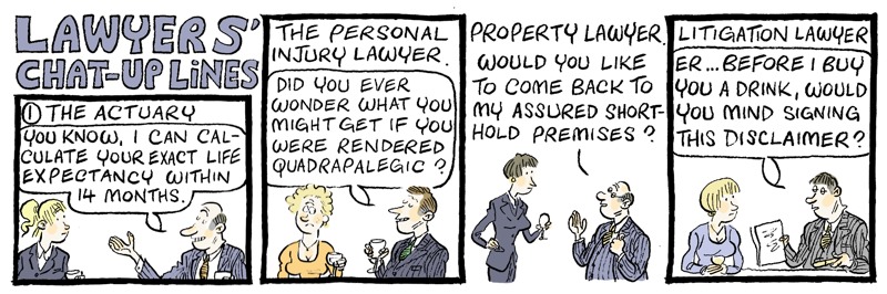 This cartoon is by Alex Williams who draws the Queen’s Counsel cartoons for The Times and in numerous books including Lawyers Uncovered. He also does the cartoons for BabyBarista and has had two more excellent books published recently: 101 Ways to Leave the Law and 101 Uses for a Useless Banker. He offers almost all of his cartoons for sale at £120 for originals and £40 for copies and they can be obtained from this email info@qccartoon.com.