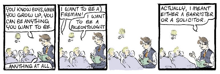 This cartoon is by Alex Williams who draws the Queen’s Counsel cartoons for The Times and in numerous books including Lawyers Uncovered. He also does the cartoons for BabyBarista and has had two more excellent books published recently: 101 Ways to Leave the Law and 101 Uses for a Useless Banker. He offers almost all of his cartoons for sale at £120 for originals and £40 for copies and they can be obtained from this email info@qccartoon.com.