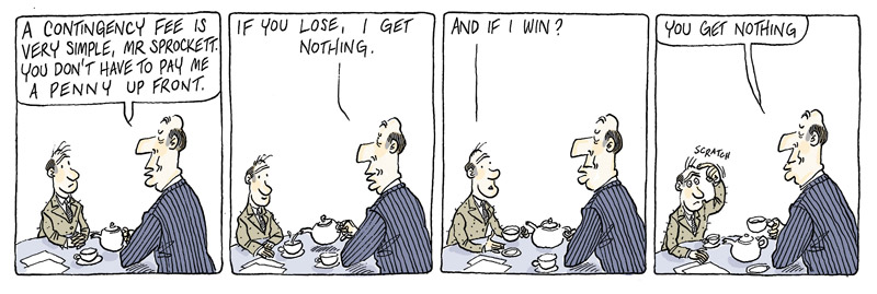This cartoon is by Alex Williams who draws the Queen’s Counsel cartoons for The Times and in numerous books including Lawyers Uncovered. He also does the cartoons for BabyBarista and has had two more excellent books published recently: 101 Ways to Leave the Law and 101 Uses for a Useless Banker. He offers almost all of his cartoons for sale at £120 for originals and £40 for copies and they can be obtained from this email info@qccartoon.com.