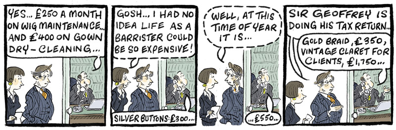 This cartoon is by Alex Williams who draws the Queen’s Counsel cartoons for The Times and in numerous books including The Queen’s Counsel Lawyer’s Omnibus. He offers almost all of his cartoons for sale at £120 for originals and £40 for copies and they can be obtained from this email info@qccartoon.com.