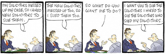 This cartoon is by Alex Williams who draws the Queen’s Counsel cartoons for The Times and in numerous books including The Queen’s Counsel Lawyer’s Omnibus. He offers almost all of his cartoons for sale at £120 for originals and £40 for copies and they can be obtained from this email info@qccartoon.com.